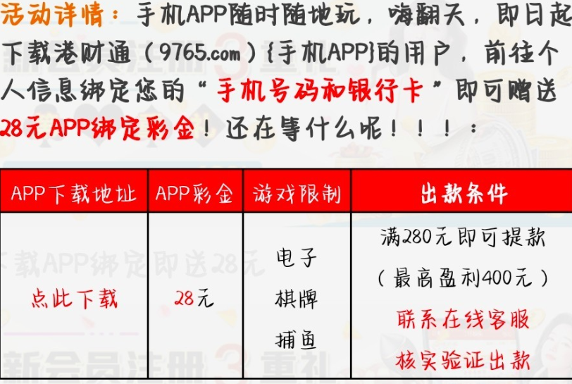 活动详情:港彩通下载APP注册优惠大厅申请28彩金