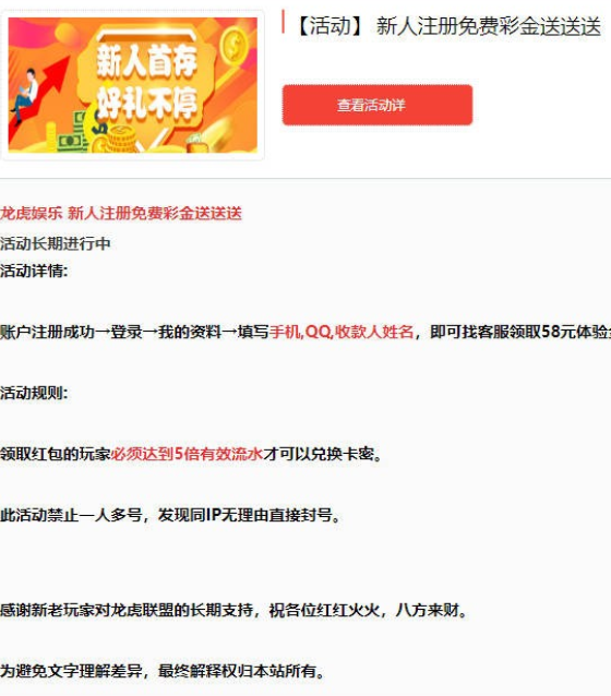 活动详情:龙虎28网站送58,5倍流水出款